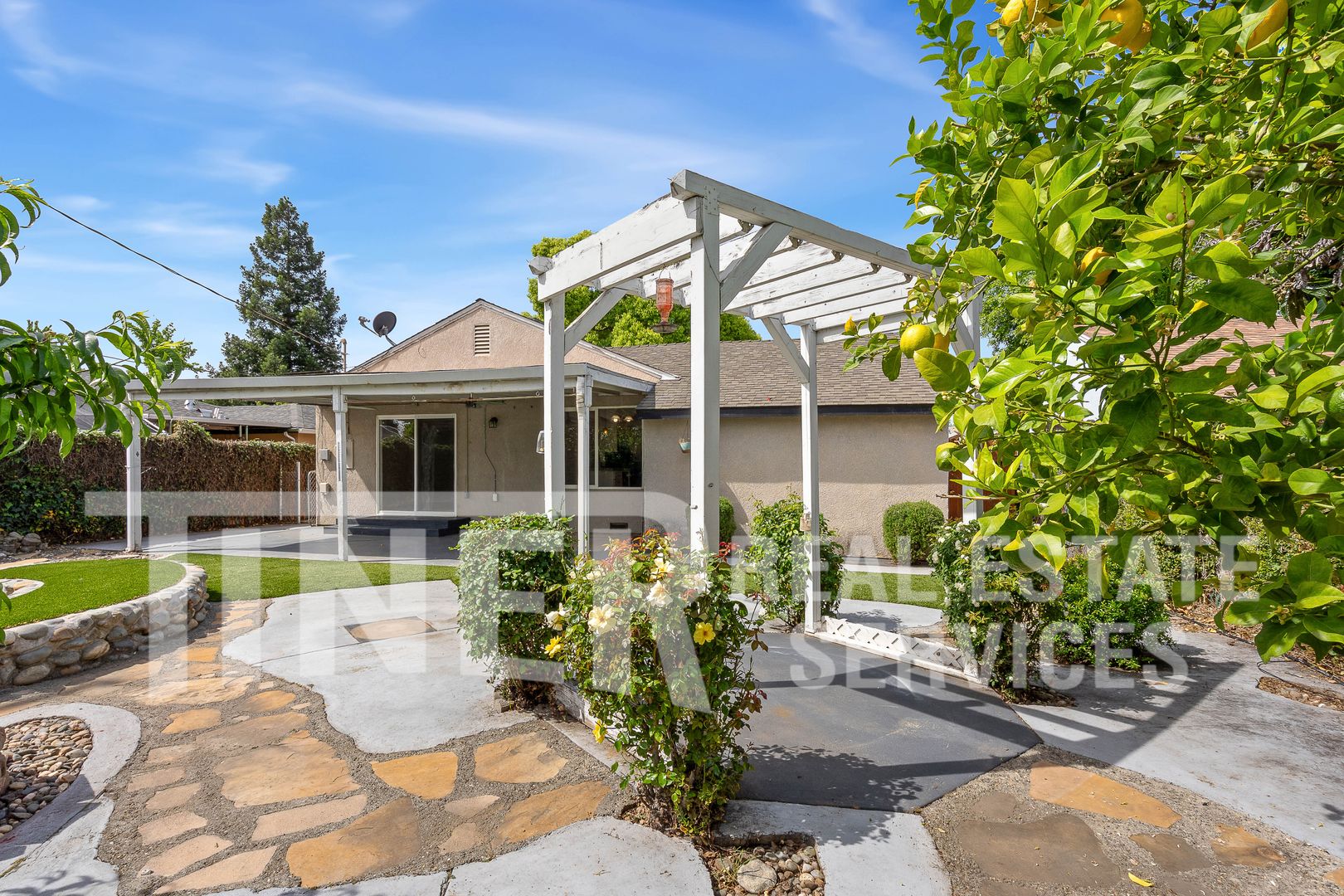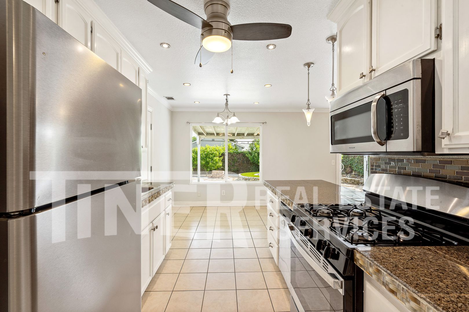 Charming home features an updated kitchen with granite countertops, custom tile work, and upgraded lighting. Kitchen and dining area flows into a bright and inviting living area. Sunny sliding glass door in the living room opens to a spacious backyard with a covered patio, ideal for outdoor enjoyment. The landscaped yard includes a variety of fruit trees, including plum, orange, peach, apple, and lemon. Enjoy a quaint, serene setting that feels like your own private garden retreat.