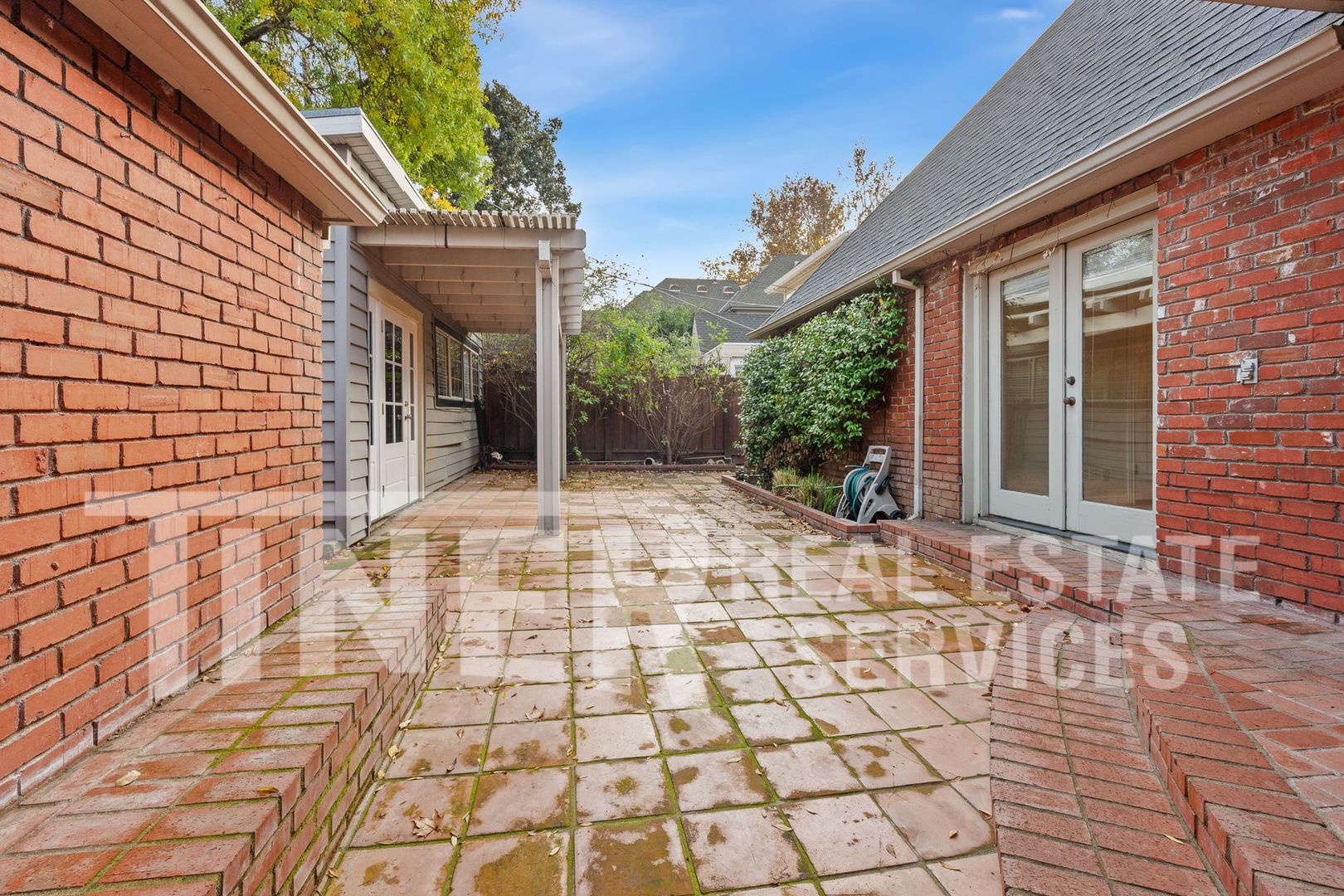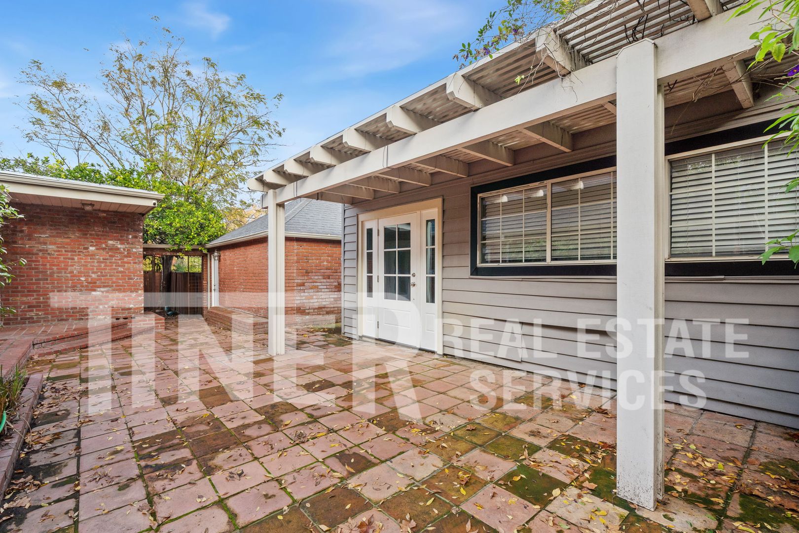 The French doors lead to a tranquil patio, perfect for outdoor relaxation or entertaining. The property also includes a detached garage with two parking spots and a separate guest quarters, offering additional living space. For wine enthusiasts, there's a built-in wine cellar to store your collection. The home also includes in-unit laundry and ceiling fans in each room for added convenience.